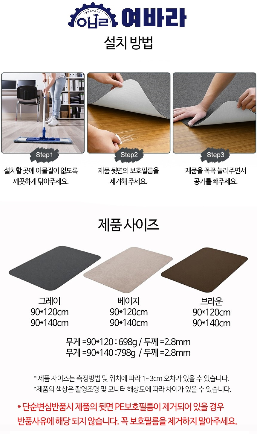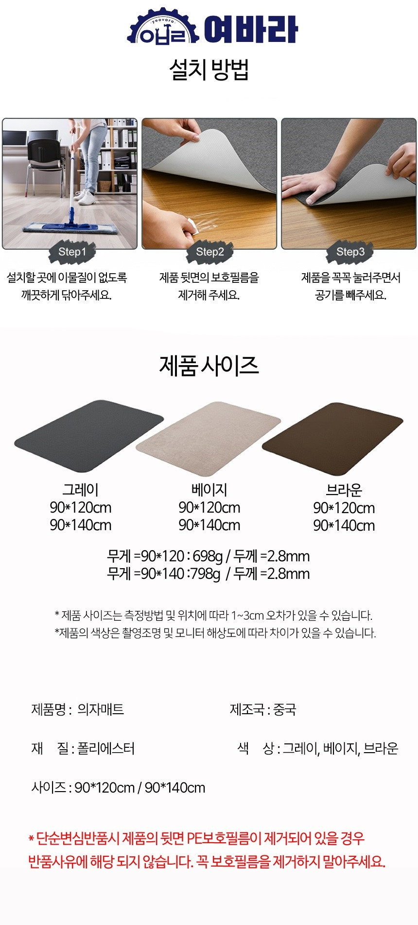 바닥보호 책상의자매트 긁힘방지 장판 스크래치 카페트 여바라 의자바닥매트